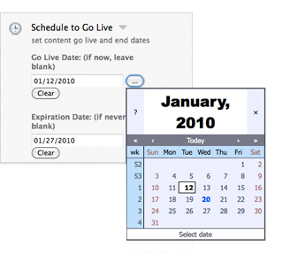 Scheduling pages to publish to the live site is a valuable feature for Backstage users with date-specific pages to post on the site. For example, a company with a special sale designed to run on just one weekend would use this feature to post the sale and remove it automatically. All scheduled pages will automatically appear and disappear from the live site on the dates specified. No more worries about whether someone remembered to put the page up on the site or remove it - Backstage remembers this for you.