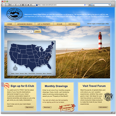To make this dream a reality, Weary Head chose Your Creative People. The site needed to be scalable as property owners signed on, capable of growing from its first customer to over 50,000 customers. The site also had to be easy enough for property owners, vacation renters, and Weary Head staff to use. To complete the project, Your Creative People also needed to create a new brand identity (logo) for Weary Head that would harmonize perfectly with the new web site.